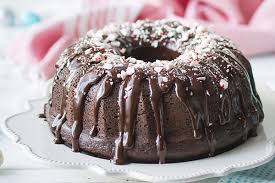 The aromas are intoxicating! Transfer the thick, fluffy batter to a lightly greased bundt pan, and bake in your KitchenAid® Gas Convection Slide-In Range until a tester inserted into the thickest part of the cake comes out clean or with a few moist crumbs. Once the cake is turned out of the pan and cooled, you can start on the topping. Heat the cream in a saucepan from the KitchenAid® Stainless Steel 10-Piece Set until it’s just barely simmering. Pour it over the chopped chocolate and stir until smooth and glossy. Then just drizzle the ganache all over your chocolate peppermint bundt cake, and garnish with crushed candy canes, for a presentation that’s perfectly fun and festive! Share your take on this Peppermint Crunch Bundt Cake on Instagram using #MadeWithKitchenAid for a chance to be featured. Peppermint Crunch Bundt Cake Recipe 1 1/2 cups granulated sugar 1 cup all-purpose flour 1 cup unsweetened cocoa powder 1/2 cup cake flour