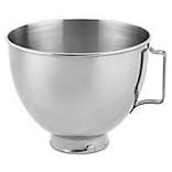 5-Quart Stainless Steel Bowl KitchenAid KB3SS 3-Quart Stainless Steel Bowl for Tilt-Head Stand Mixers KitchenAid KFE5T Flex Edge Beater for Tilt-Head Stand Mixers KitchenAid Artisan Stainless Steel Bowl 5 Qt. Party prep is a lot easier when you have multiple bowls for use with your KitchenAid 4-1/2-qt. stand mixer. This quality 4-1/2-qt. stainless steel bowl locks into the mixer base, making it perfect for heavy mixes. Features a flat bottom for staying put on the counter and a handle for easy maneuvering. When mixing up big batches of cookies or bread with a KitchenAid mixer, you don't want to have to stop to wash the bowl. An extra bowl to fit the mixer is a welcome addition to a kitchen arsenal, and this bowl earns its place in the cupboard, because it will also be used as a versatile mixing bowl independent of the mixer. It's made of thick polished stainless steel with a brushed steel interior and a flat base to rest securely on the counter. I has a sturdy handle and two brackets for fitting into the mixer.