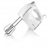 The blades are made of stainless steel, hence making them long lasting and rust-proof. This sleek hand blender with chopping attachment takes up very little space and can be wall-mounted too.Accessorised for Your Convenience The Philips 250 Watt hand blender comes with a detachable plastic jar that doubles up as a container while blending or storage as well as a measuring cup. Philips white hand blender with chopping attachment also has soft, easy-to-push buttons and an ergonomic grip so that you don't strain your hand even while holding it for several minutes and at high speeds. Since it has detachable legs, the unit can be dismantled for easy cleaning. The hand blender as well as the accessories can be also cleaned in the dishwasher.Brand: PhilipsPower: 250WOperating Voltage: 220 to 240 VTwo-way twist blade made of stainless steelSoft rubber push button with ergonomic hand gripComes with a detachable plastic barColour: WhiteDetachable legsDishwasher-proof shaft and accessories The Philips HR1361/C Hand Blender is a powerful hand blender that can give you very smooth results.